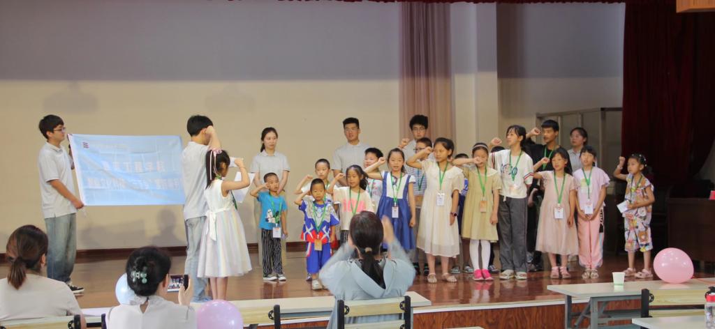 开营仪式由杨陵区大寨街道社工站社工徐瑞主持,社区代表李格芳致辞并宣布活动开始。建筑工程学院王琦对本次活动的开展表示充分肯定,希望三下乡志愿者团队践行“奉献、友爱、互助、进步”的志愿精神,敢担当、能吃苦、肯奋斗,并与张齐一同向梁氏窑社区捐赠体育用品。随后志愿者为小营员佩戴营员证并与其一起完成心愿树,每位小朋友都表达了自己对于夏令营的期待和祝福。最后,志愿者代表赵培淇与小营员代表赵婉清带领全体成员进行宣誓。
