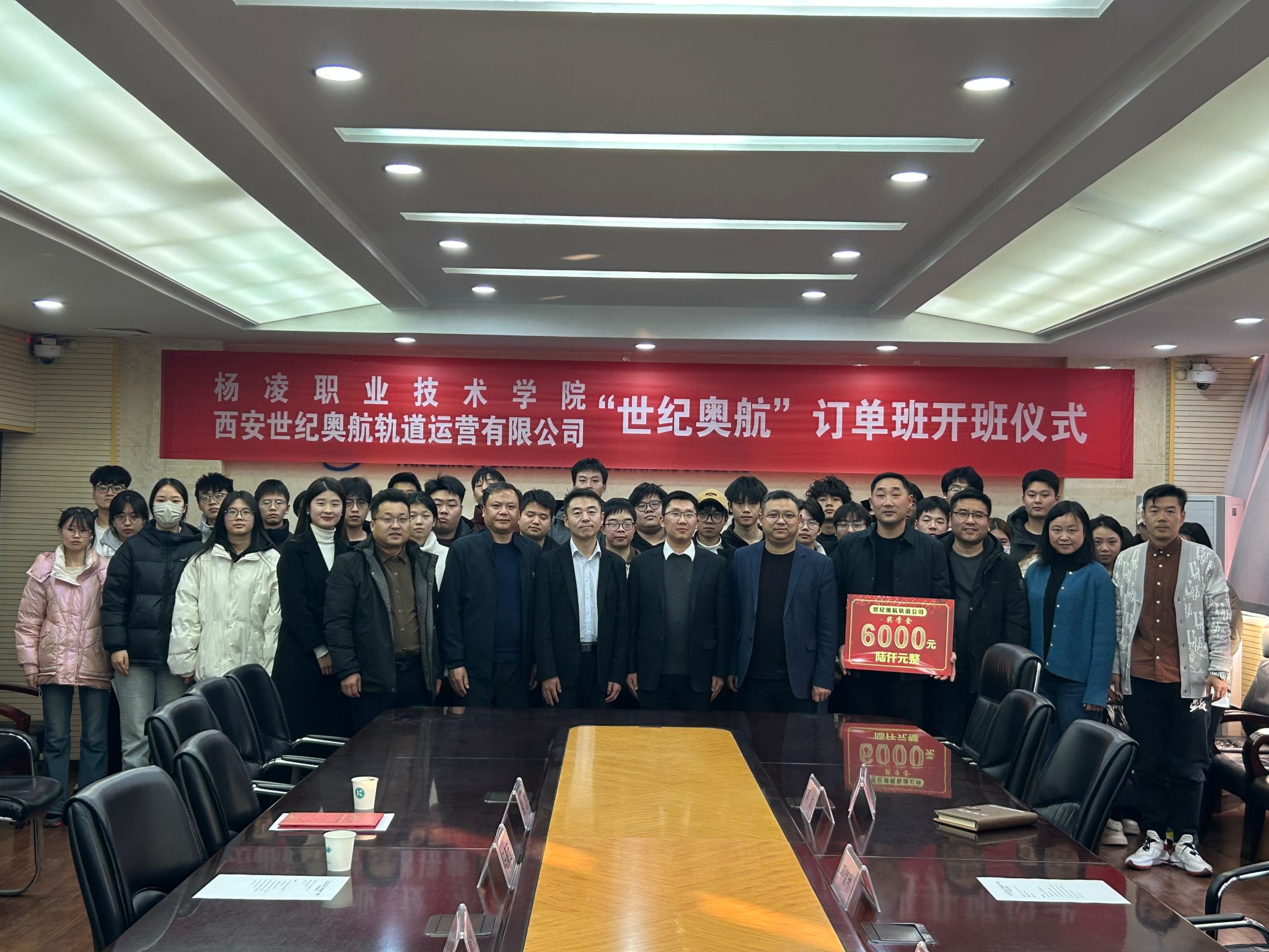 仪式上,校企双方签订了订单班合作协议,西安世纪奥航轨道运营有限公司向学院捐款6000元用于订单班奖学金发放,交通与测绘工程学院向企业颁发了捐赠证书,订单班学生进行了表态发言。