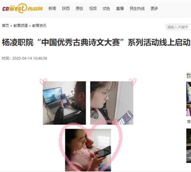 4月13日上午,杨凌职业技术学院学生“中国优秀古典诗文大赛”系列活动线上举行了开幕仪式,副院长张迪参加线上启动仪式并讲话。