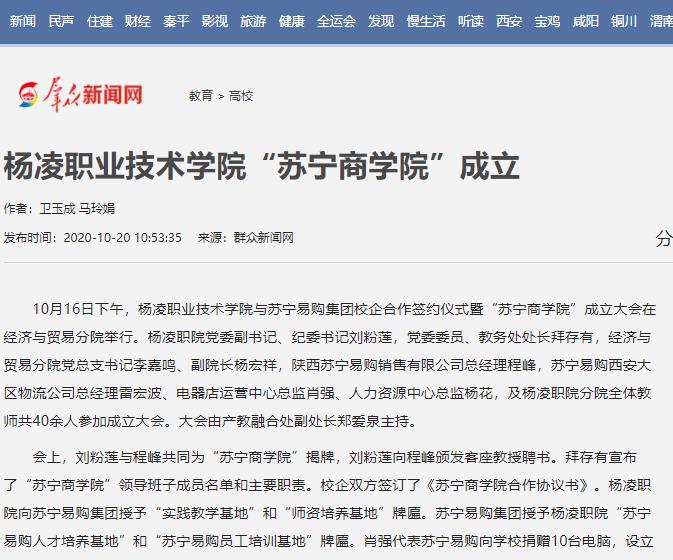 【群众新闻网】杨凌职业技术学院“苏宁商学院”成立