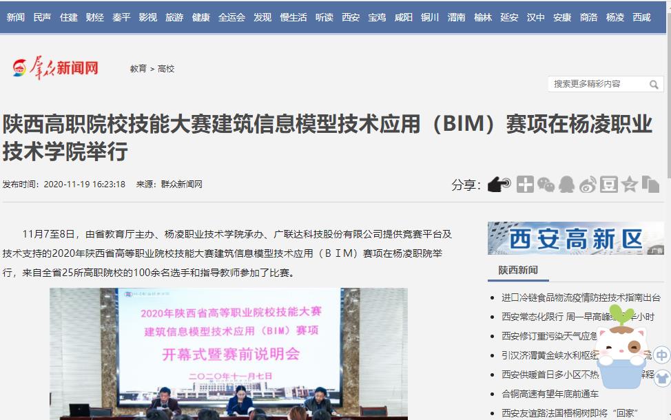 11月7至8日,由省教育厅主办、杨凌职业技术学院承办、广联达科技股份有限公司提供竞赛平台及技术支持的2020年陕西省高等职业院校技能大赛建筑信息模型技术应用(BIM)赛项在杨凌职院举行,来自全省25所高职院校的100余名选手和指导教师参加了比赛。