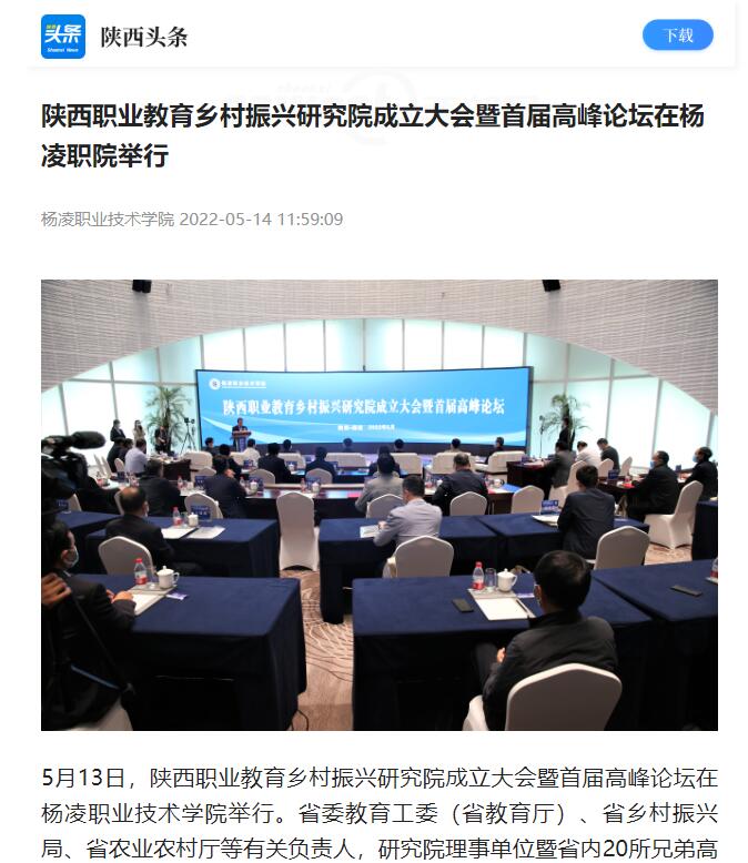 【陕西头条】陕西职业教育乡村振兴研究院成立大会暨首届高峰论坛在杨凌职院举行