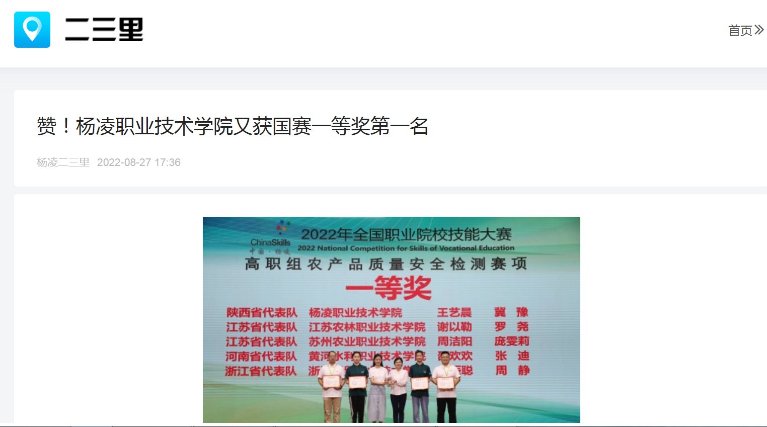 8月22日至27日,2022全国职业院校技能大赛“农产品质量安全检测”赛项在杨凌职业技术学院举行。经过激烈角逐,由杨凌职院王艺晨、冀豫2名学生组成的陕西省代表队,在本次赛项中取得了一等奖第一名的好成绩。