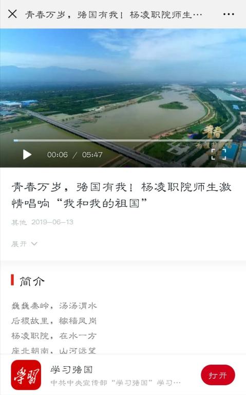 巍巍秦岭,汤汤渭水后稷故里,稼穑凤岗杨凌职院,在水一方座北朝南,山河远望秀木参天,夜鹭翱翔素秉大志,民富国强梦起于林,志在心上以农林水为根本经国本、解民生、尚科学谱写华夏大地新乐章今天,我们在渭水之畔、农科新城,接到陕西工业职业技术学院和西安思源学院的拉歌邀请,用歌声为祖国70华诞献礼。