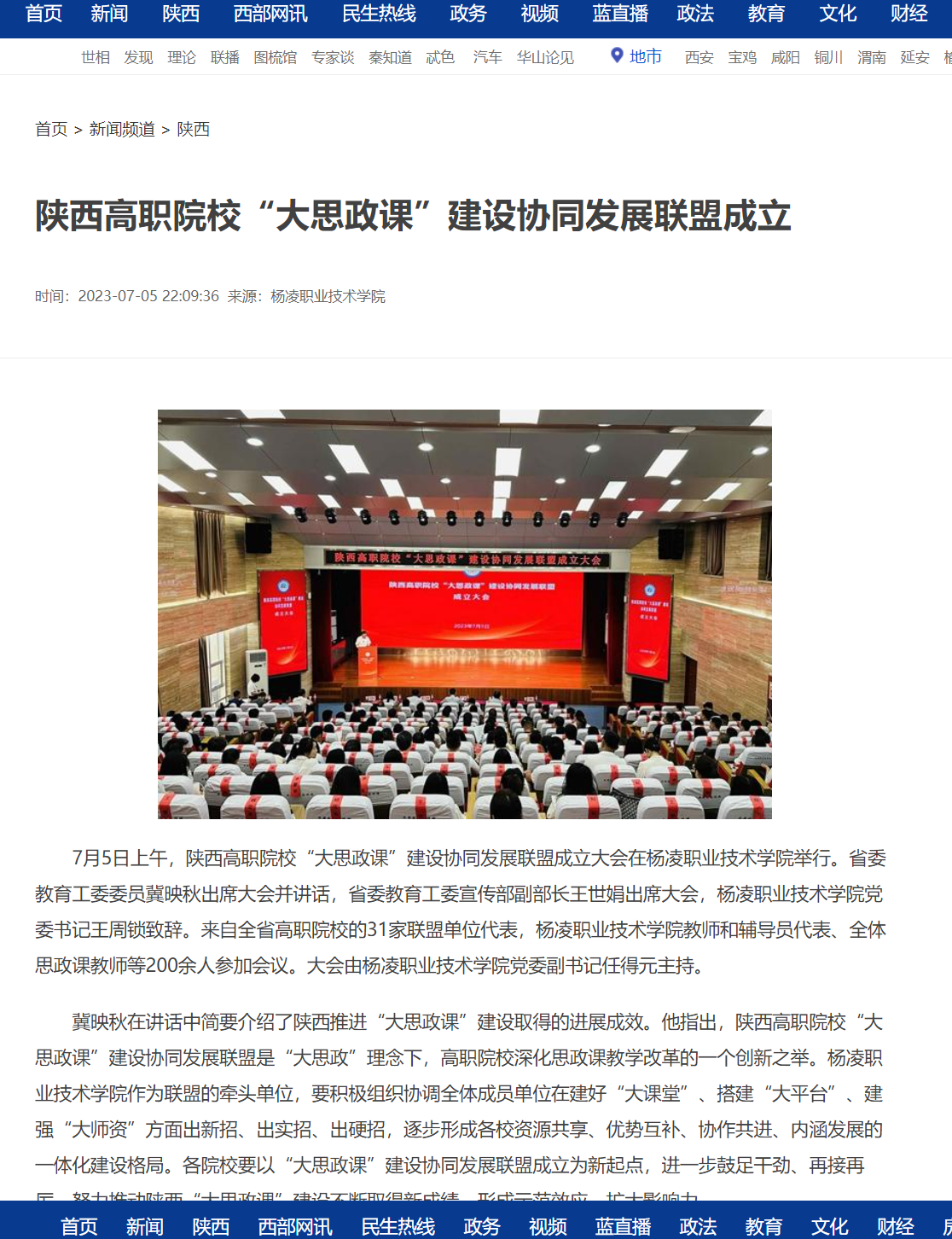 【陕西头条】陕西高职院校“大思政课”建设协同发展联盟成立