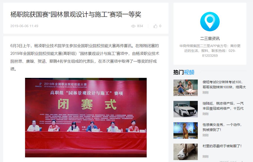 6月3日上午,杨凌职业技术院学生参加全国职业院校技能大赛再传喜讯。在刚刚闭赛的2019年全国职业院校技能大赛(高职组)“园林景观设计与施工”赛项中,由杨凌职业技术院林思、唐璇、贺涵、蔡鹏4名学生组成的代表队,在本次赛项中取得了一等奖的好成绩。