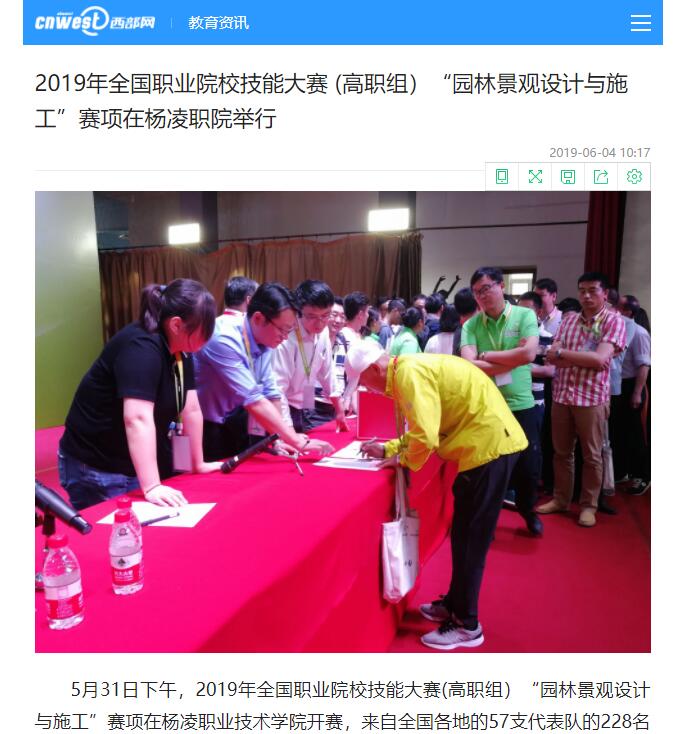 5月31日下午,2019年全国职业院校技能大赛(高职组)“园林景观设计与施工”赛项在杨凌职业技术学院开赛,来自全国各地的57支代表队的228名参赛选手将同台竞技。