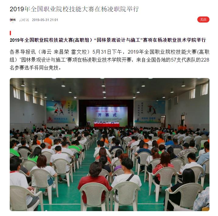 各界导报讯(海云 来昌荣 雷文姣)5月31日下午,2019年全国职业院校技能大赛(高职组)“园林景观设计与施工”赛项在杨凌职业技术学院开赛,来自全国各地的57支代表队的228名参赛选手将同台竞技。