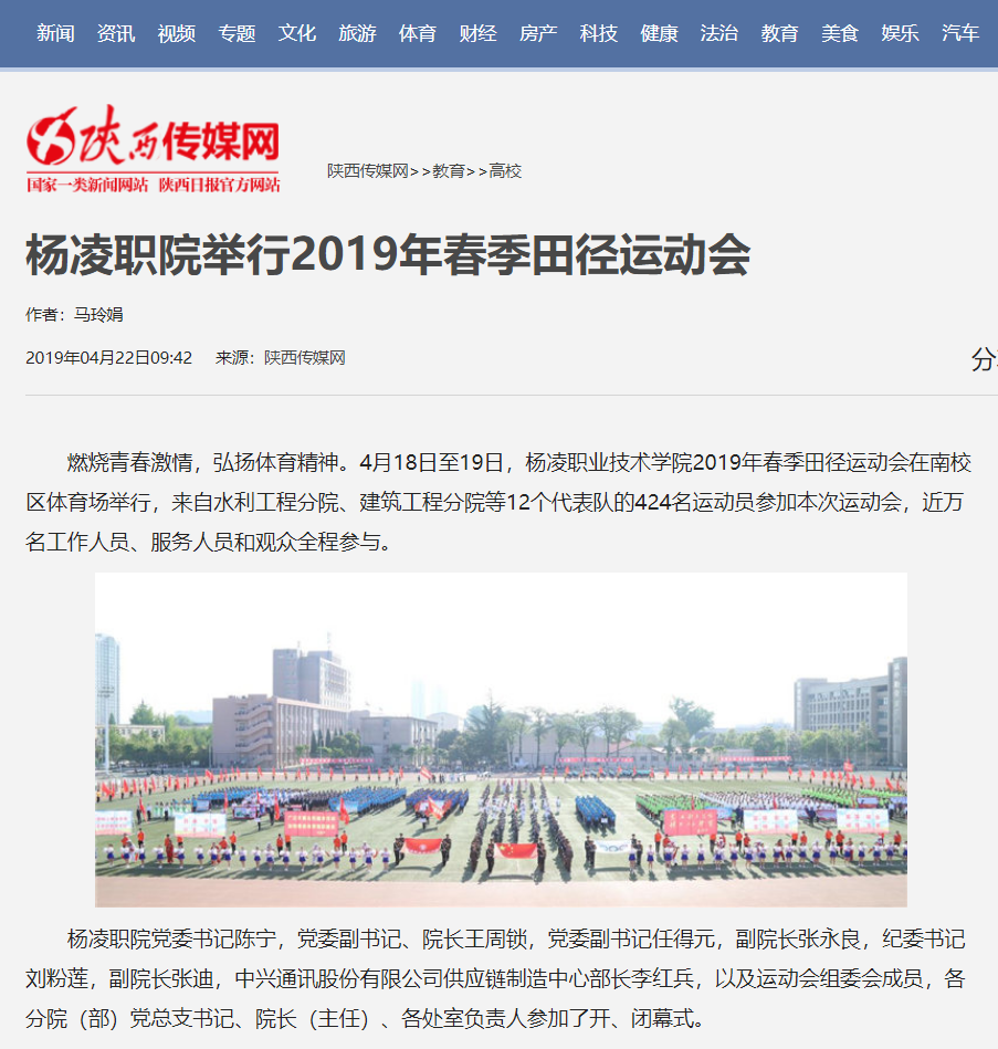 燃烧青春激情,弘扬体育精神。4月18日至19日,杨凌职业技术学院2019年春季田径运动会在南校区体育场举行,来自水利工程分院、建筑工程分院等12个代表队的424名运动员参加本次运动会,近万名工作人员、服务人员和观众全程参与。