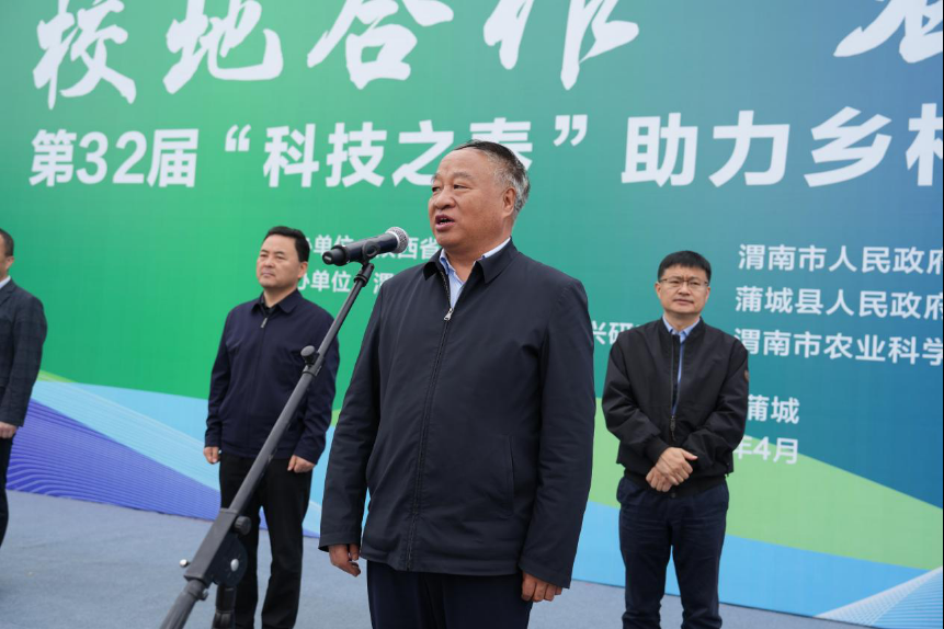 杨凌职业技术学院党委书记王周锁宣布第32届“科技之春”助力乡村振兴活动启动