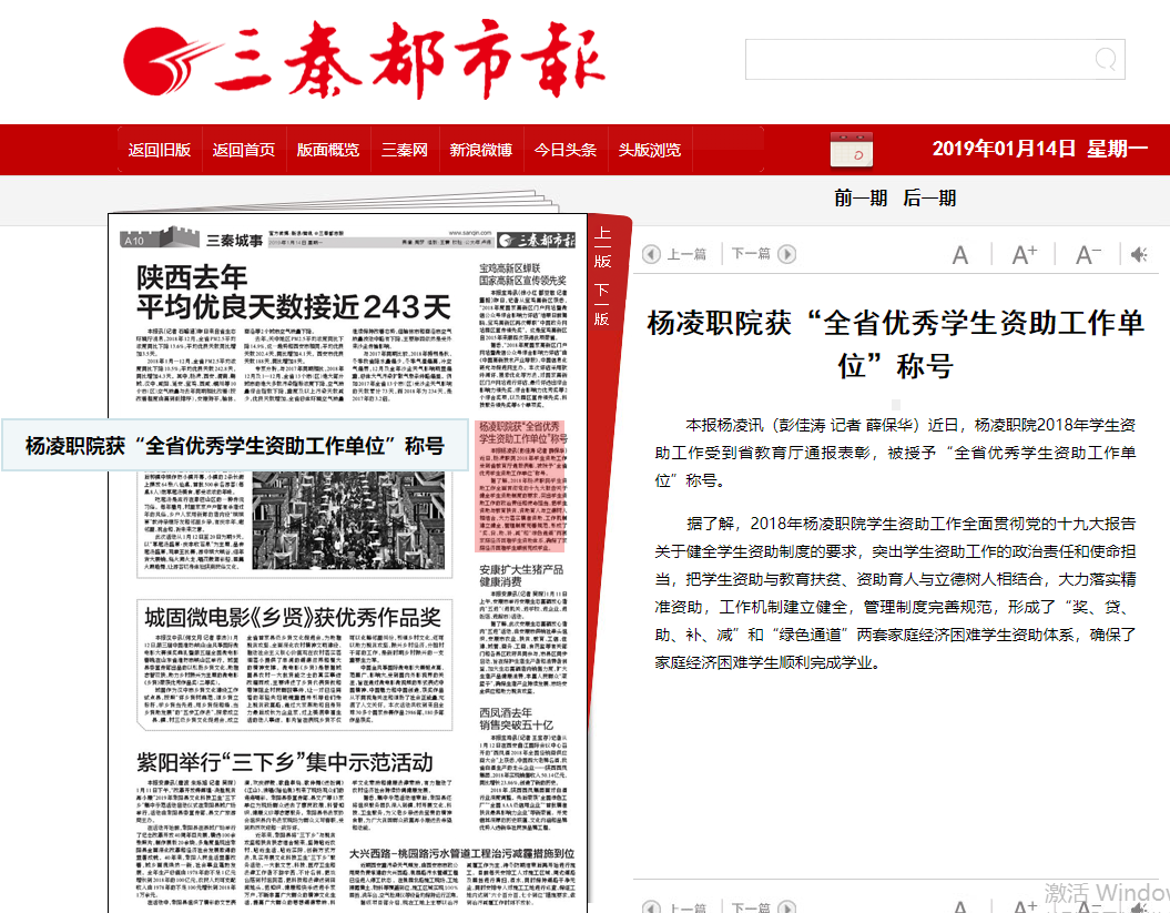 本报杨凌讯(彭佳涛 记者 薛保华)近日,杨凌职院2018年学生资助工作受到省教育厅通报表彰,被授予“全省优秀学生资助工作单位”称号。