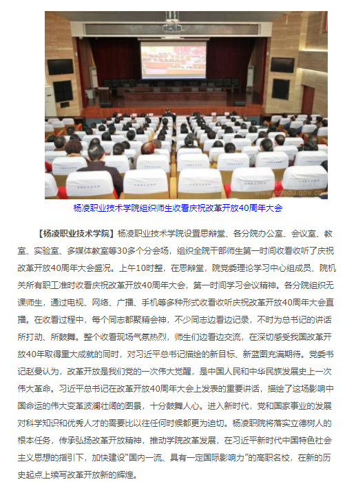 杨凌职业技术学院组织师生收看庆祝改革开放40周年大会