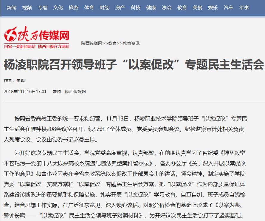 【陕西传媒网】杨凌职院召开领导班子“以案促改”专题民主生活会
