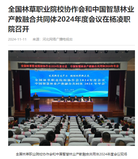 2024年11月8日至9日,由国家林业和草原局林草职业教育研究中心、中国林业教育学会职业教育分会主办,杨凌职业学院承办的全国林草职业院校协作会2024年度会议暨新质生产力赋能现代林草行业高质量发展研讨会、中国智慧林业产教融合共同体2024年年会暨新质生产力赋能智慧林业人才培养高质量发展研讨会在杨凌职业技术学院召开。本次年会的主题为“加快发展林草行业新质生产力,扎实推进林草职业教育高质量发展”。