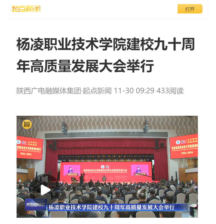 【起点新闻】杨凌职业技术学院建校九十周年高质量发展大会举行