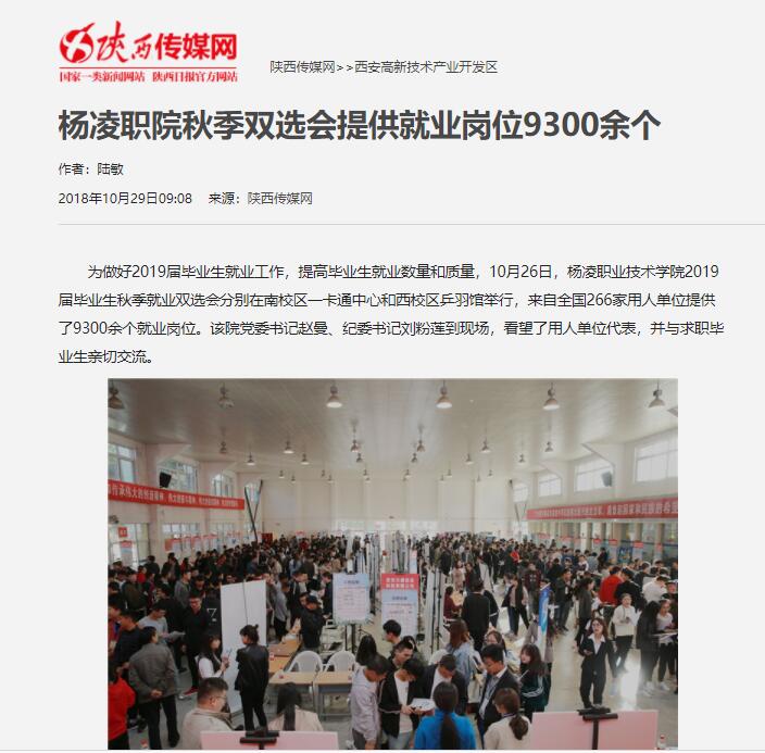 为做好2019届毕业生就业工作,提高毕业生就业数量和质量,10月26日,杨凌职业技术学院2019届毕业生秋季就业双选会分别在南校区一卡通中心和西校区乒羽馆举行,来自全国266家用人单位提供了9300余个就业岗位。该院党委书记赵曼、纪委书记刘粉莲到现场,看望了用人单位代表,并与求职毕业生亲切交流。