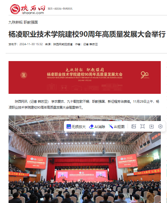 学农爱农,九十载弦歌不辍;职教强国,新征程芳华赓续。11月29日上午,杨凌职业技术学院建校90周年高质量发展大会隆重举行。