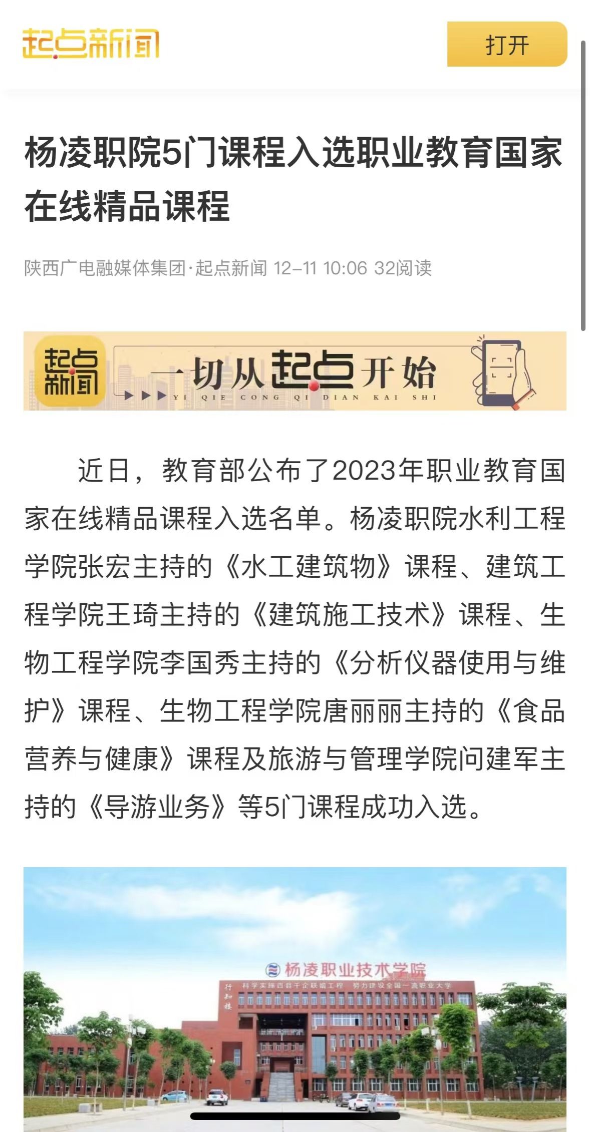 近日,教育部公布了2023年职业教育国家在线精品课程入选名单。杨凌职院水利工程学院张宏主持的《水工建筑物》课程、建筑工程学院王琦主持的《建筑施工技术》课程、生物工程学院李国秀主持的《分析仪器使用与维护》课程、生物工程学院唐丽丽主持的《食品营养与健康》课程及旅游与管理学院问建军主持的《导游业务》等5门课程成功入选。