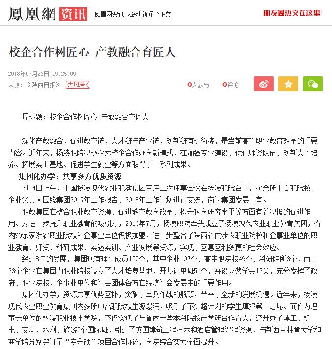 深化产教融合,促进教育链、人才链与产业链、创新链有机衔接,是当前高等职业教育改革的重要内容。近年来,杨凌职院积极探索校企合作办学新模式,在加强专业建设、优化师资队伍、创新人才培养、拓展实训基地、促进学生就业等方面取得了一系列成果。
