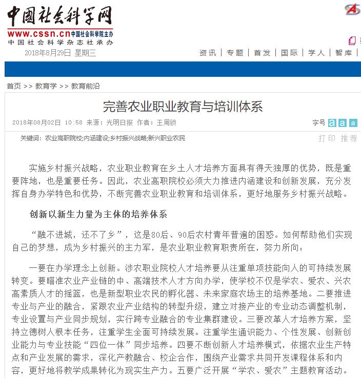 乡村振兴,农业职业教育大有可为。农业高职院校不断创新,并将为乡村振兴提供强力有序的人才支撑。