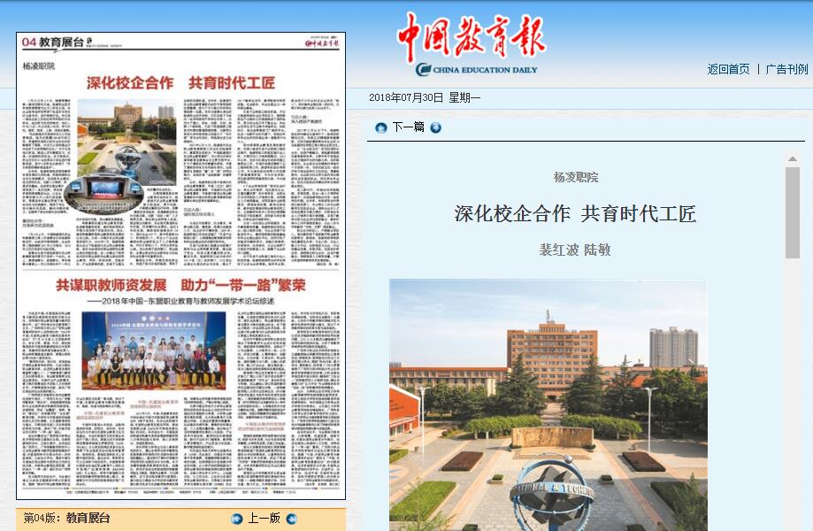 【中国教育报】杨凌职院:深化校企合作 共育时代工匠