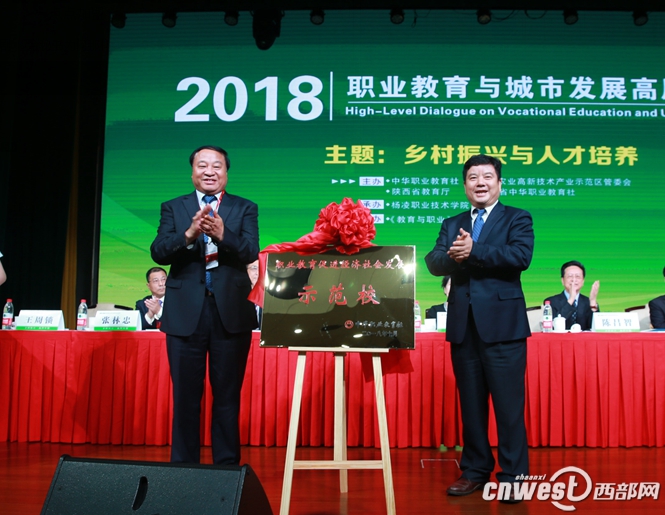开幕式上,陈昌智向杨凌示范区管委会授予“职业教育促进经济社会发展示范区”牌子,李九红代表杨凌示范区管委会接牌;方乃纯向杨凌职业技术学院授予“职业教育促进经济社会发展示范校”牌子,王周锁代表杨凌职业技术学院接牌。