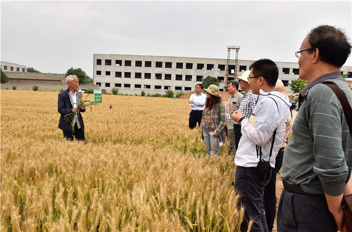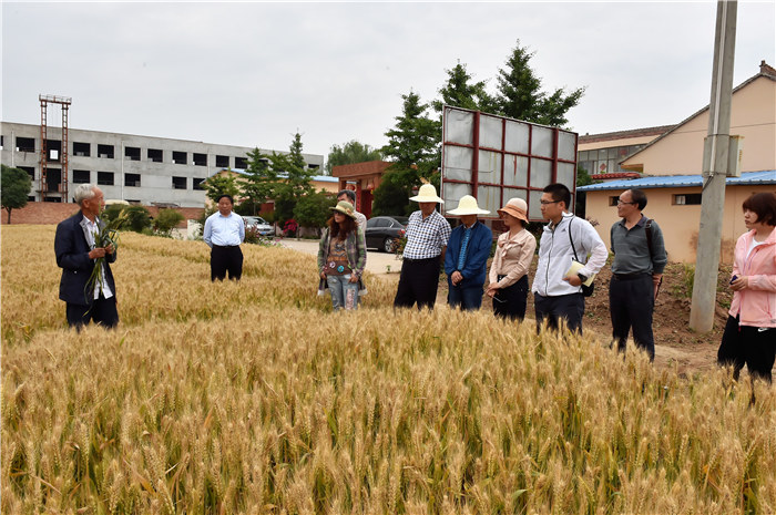 5月25日上午,农业农村部全国农技推广中心国家小麦区试负责人郭利磊,陕西省农业厅相关领导以及来自宁夏、河北、河南、甘肃、安徽等地的相关专家一行9人来到杨凌职业技术学院扶风豆村农场,在该院院长王周锁及科研处相关负责人的陪同下,观摩了我国小麦育种专家、该院赵瑜研究员培育的大穗大粒特殊类型小麦新品种“武农981”和“武农988”。
