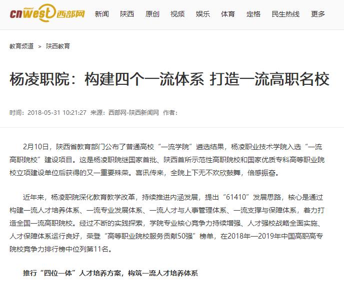 【西部网】杨凌职院:构建四个一流体系 打造一流高职名校