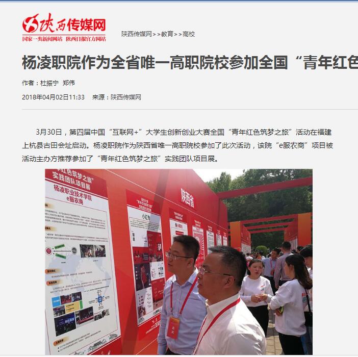 3月30日,第四届中国“互联网+”大学生创新创业大赛全国“青年红色筑梦之旅”活动在福建上杭县古田会址启动。杨凌职院作为陕西省唯一高职院校参加了此次活动,该院“e服农商”项目被活动主办方推荐参加了“青年红色筑梦之旅”实践团队项目展。