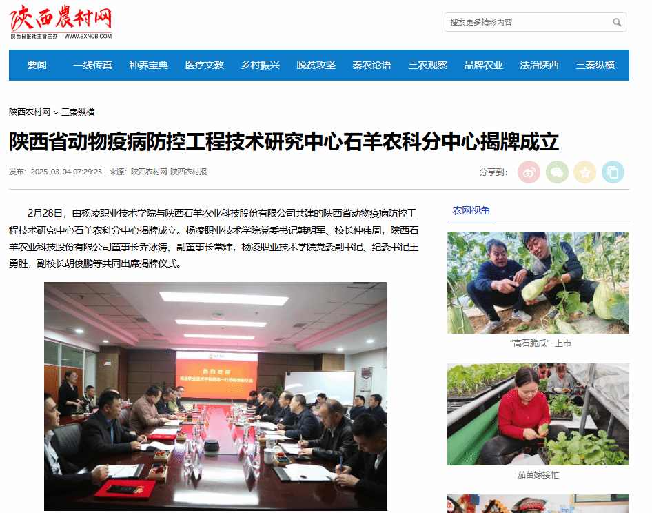 【陕西农村网】陕西省动物疫病防控工程技术研究中心石羊农科分中心揭牌成立