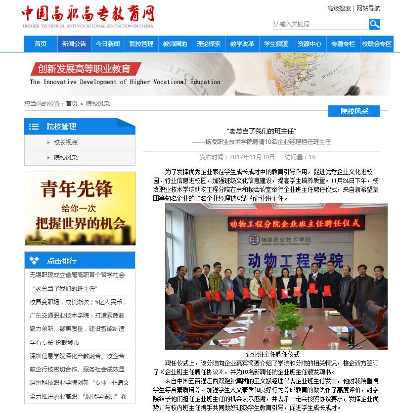 ——杨凌职业技术学院聘请10名企业经理担任班主任
