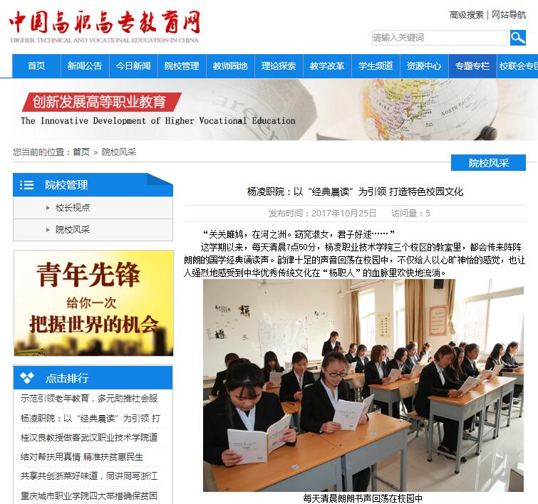 【中国高职高专网】杨凌职院:以“经典晨读”为引领 打造特色校园文化