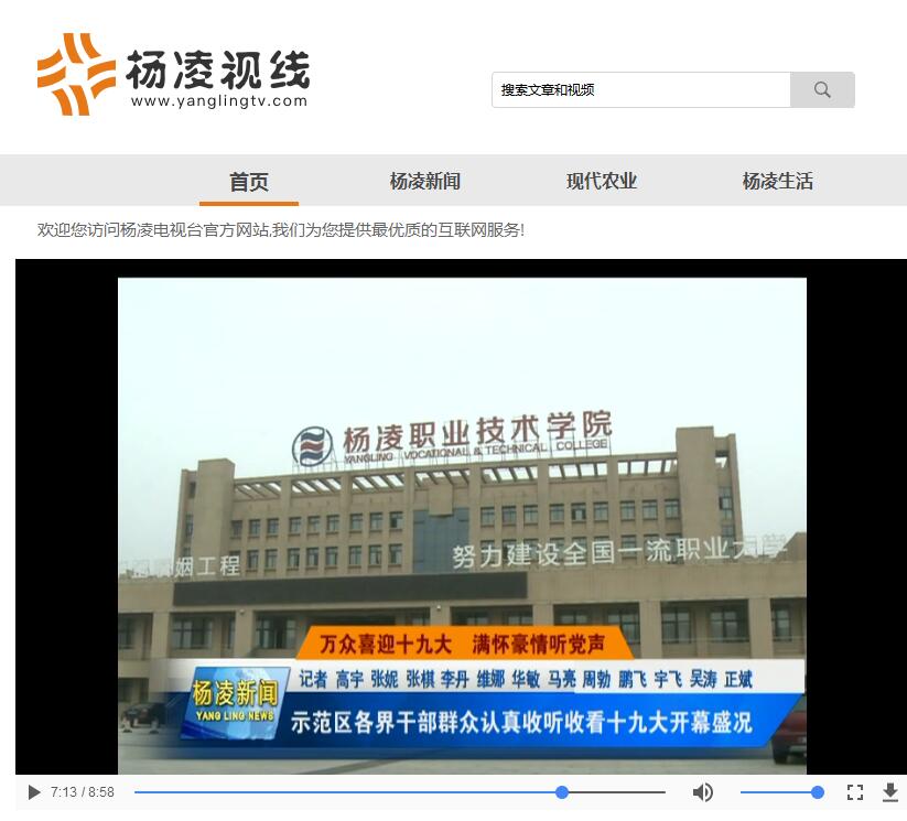10月18日,杨凌电视台《杨凌新闻》7分12秒,以《示范区各界干部群众认真收听收看十九大开幕盛况》为题,报道了我院党员干部和广大师生收看收听十九大开幕盛况的新闻。