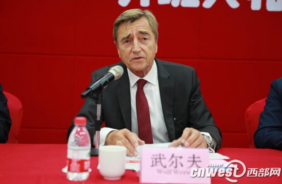 德国石荷州首府基尔地区职业教育中心学校校长武尔夫·魏泽西讲话。
