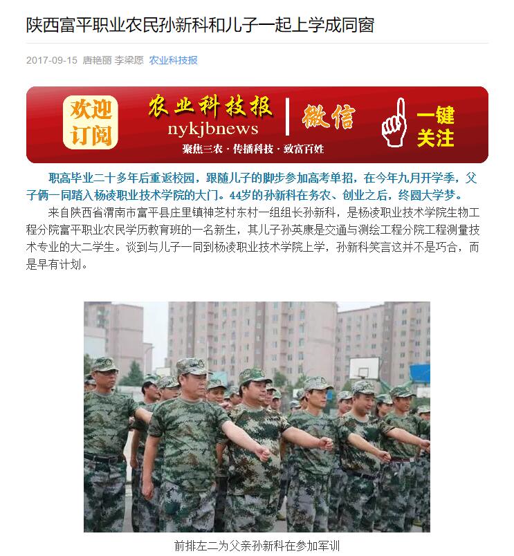 【农业科技报】陕西富平职业农民孙新科和儿子一起上学成同窗