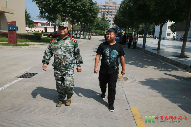 父子二人徜徉在杨凌职业技术学院校园