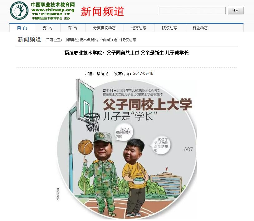 这个开学季,杨凌职业技术学院(简称杨凌职院)校园里有一对特殊的父子,父亲是今年考入该校的新生,儿子已经大二,算是父亲的“学长”了。