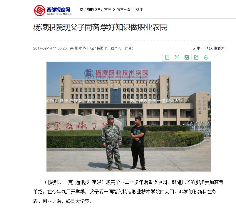 【中华工商时报】杨凌职院现父子同窗:学好知识做职业农民
