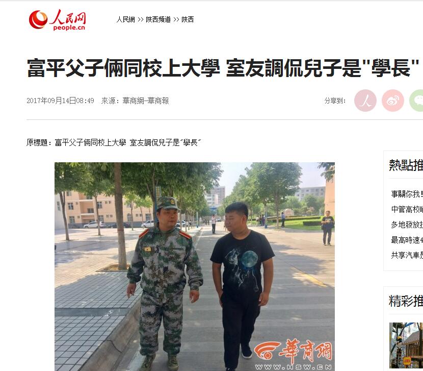 【人民网】富平父子俩同校上大学 室友调侃儿子是"学长"