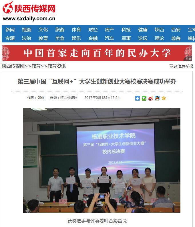 大赛期间,学院举办了全方位、多层次、多维度的各类活动来推动大赛的深入开展。一是承办了第三届中国“互联网+”大学生创新创业大赛陕西赛区训练营(第一期)。二是积极参加各级各类创新创业比赛,承办了杨陵区2017创新创业大赛(初赛),我院报送项目68个,为参赛单位数量最多,14个项目组进入决赛;组织三个项目组参加了省教育厅组织的“中美创客”大赛;组织参加了杨凌示范区成立二十周年文化创意大赛;三是与新道科技股份有限公司、艾薇思云网络科技有限公司等企业联合举办“互联网+”创新创业大赛训练营,赛前培训班4次,参训师生200余人。四是积极营造校园创新创业氛围,提供创新创业指导,助力大学生创新创业,本学期在校内举办创新创业沙龙(讲座)6期,选拔赛4期,各分院举办分院初赛11期,训练营模拟赛8期,孵化带动大学生自主创业,注册成立了十余家公司。五是成立了大学生创新创业协会,引领带动学生创新创业。六是建立了涵盖科学研究、专业指导、创业帮扶的三类导师类型的创新创业导师团队。