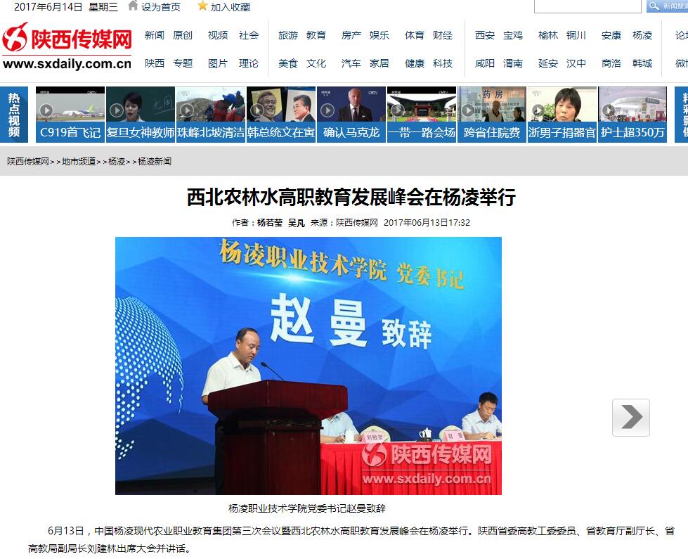6月13日,中国杨凌现代农业职业教育集团第三次会议暨西北农林水高职教育发展峰会在杨凌举行。陕西省委高教工委委员、省教育厅副厅长、省高教局副局长刘建林出席大会并讲话。