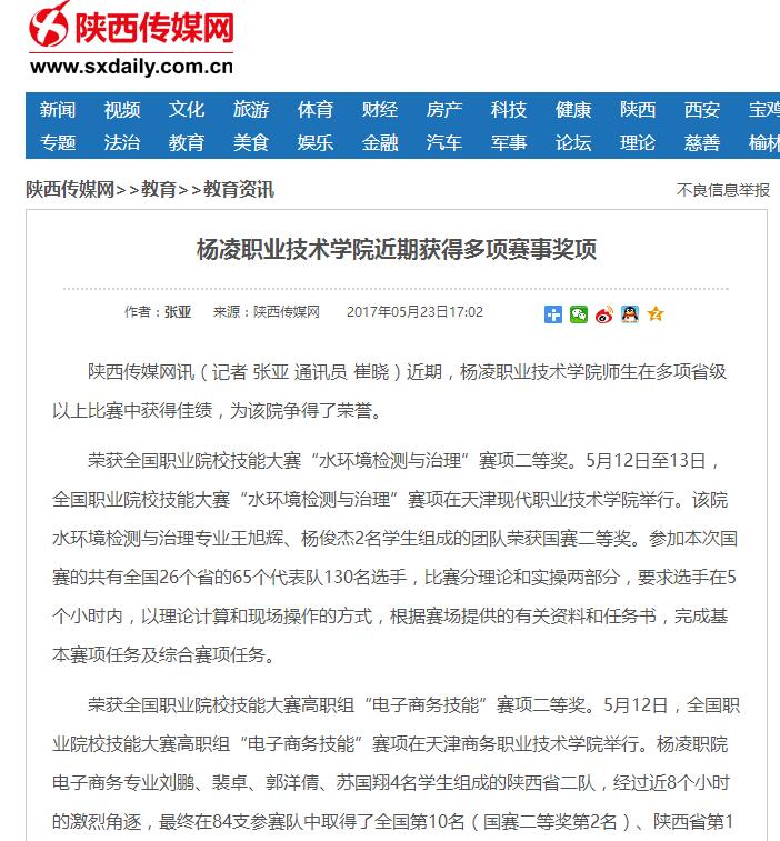 陕西传媒网讯(记者 张亚 通讯员 崔晓)近期,杨凌职业技术学院师生在多项省级以上比赛中获得佳绩,为该院争得了荣誉。