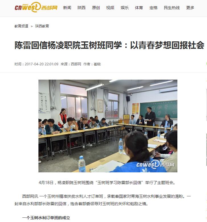 班主任李自力说,听了陈部长的回信,让老师们也更有信心了。他说:“我们将继续严格要求学生,把这个班办成一个让水利部、玉树州政府、杨凌职业技术学院都满意的班。”