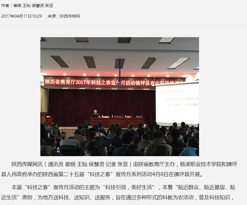 陕西传媒网讯(通讯员 崔晓 王灿 侯慧贤 记者 张亚)由陕省教育厅主办,杨凌职业技术学院和镇坪县人民政府承办的陕西省第二十五届“科技之春”宣传月系列活动4月8日在镇坪县开展。