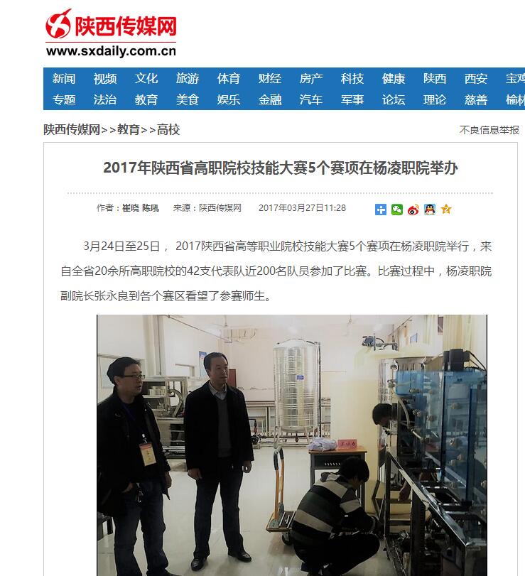 据了解,2017年陕西省高职院校技能大赛由陕西省教育厅主办,大赛共设农林牧渔、资源环境与安全、能源动力与材料、土木建筑、水利、装备制造、生物与化工、轻工纺织、交通运输/装备制造、电子信息、医药卫生、财经商贸、旅游等15个大类45个比赛项目。其中,杨凌职院分赛点承办了园林工程规划设计、水环境监测与治理、鸡新城疫抗体水平测定、西餐宴会服务、互联网+国际贸易5赛项比赛,受到了省教育厅和各参赛院校的热情赞扬和高度肯定。