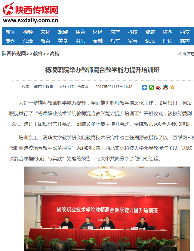为进一步推动教师教学能力提升,全面推进教师教学信息化工作, 2月13日,杨凌职院举行了“杨凌职业技术学院教师混合教学能力提升培训班”开班仪式,该校党委副书记、院长王周锁出席开幕式,副院长张永良主持开幕式。全院教师500余人参加培训。