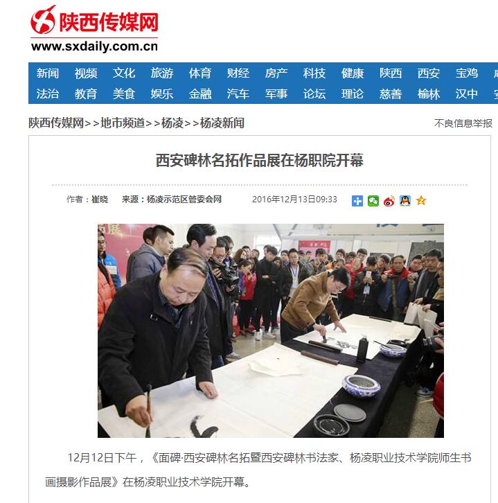 12月12日下午,《面碑·西安碑林名拓暨西安碑林书法家、杨凌职业技术学院师生书画摄影作品展》在杨凌职业技术学院开幕。