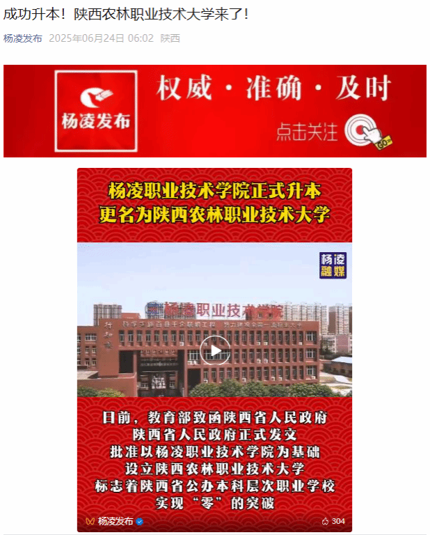 【杨凌发布】成功升本!陕西农林职业技术大学来了!