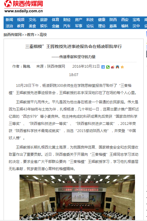 王辉教授长期扎根西北黄土高原,为我国良种选育、国家粮食安全和农民增收致富作出了重要贡献。近日,陕西省委关于开展向“三秦楷模”王辉同志学习活动的决定,要求全省广大干部群众要向“三秦楷模”王辉教授学习,学习他扎根基层无私奉献,筑梦麦田潜心育种的楷模精神。