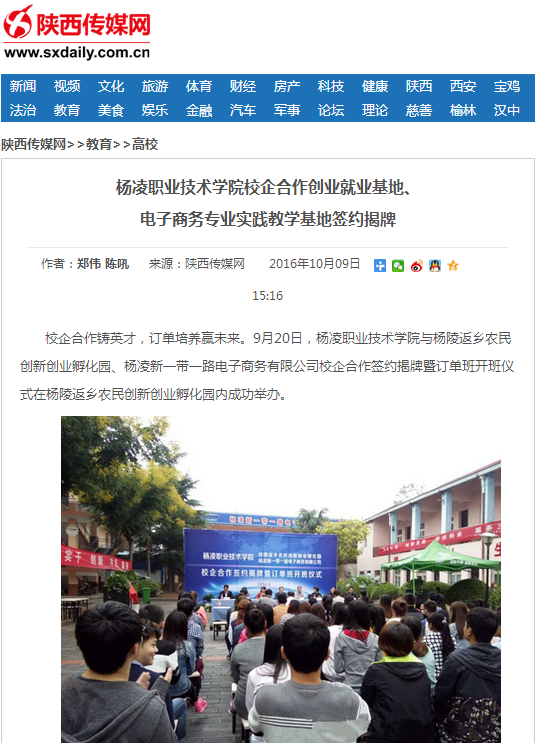 该院与杨陵返乡农民创新创业孵化园、杨凌新一带一路电子商务有限公司通过建立深度合作、紧密结合、优势互补、共同发展的合作机制,实现了学校、企业、学生多方“共赢”。今后,校企双方将依托订单班,不断加强合作,在企业的配合与支持,探索满足企业需求,实现教学与实践零距离结合的“订单式”人才培养模式,培养大批企业适用的一线技术人才,也为学生的实习和就业搭建更好的平台。